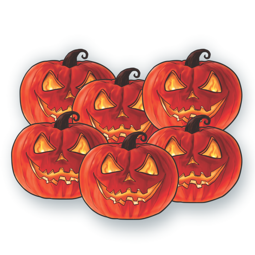 Decoração clássica de Halloween em formato de abóbora, ideal para enfeitar festas e ambientes temáticos.