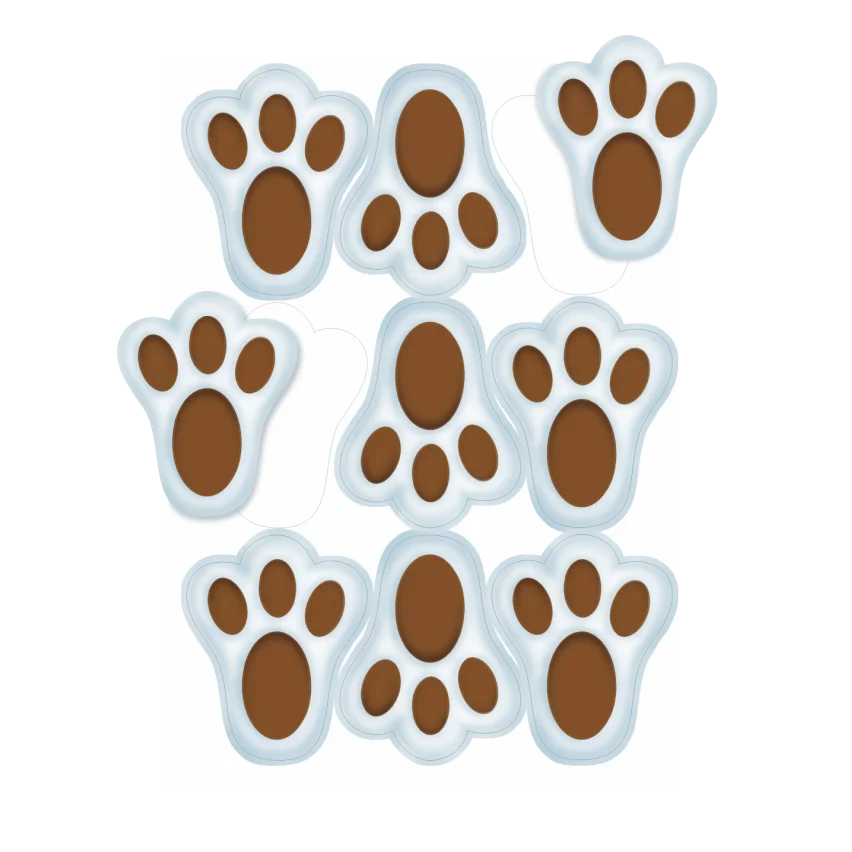 Adesivo no formato de pegadas de coelho na cor marrom, perfeito para ambientes temáticos de Páscoa.