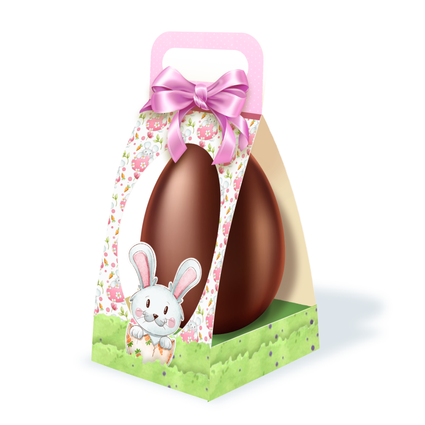 Suporte vertical para ovo de Páscoa na cor rosa, garantindo charme na decoração.