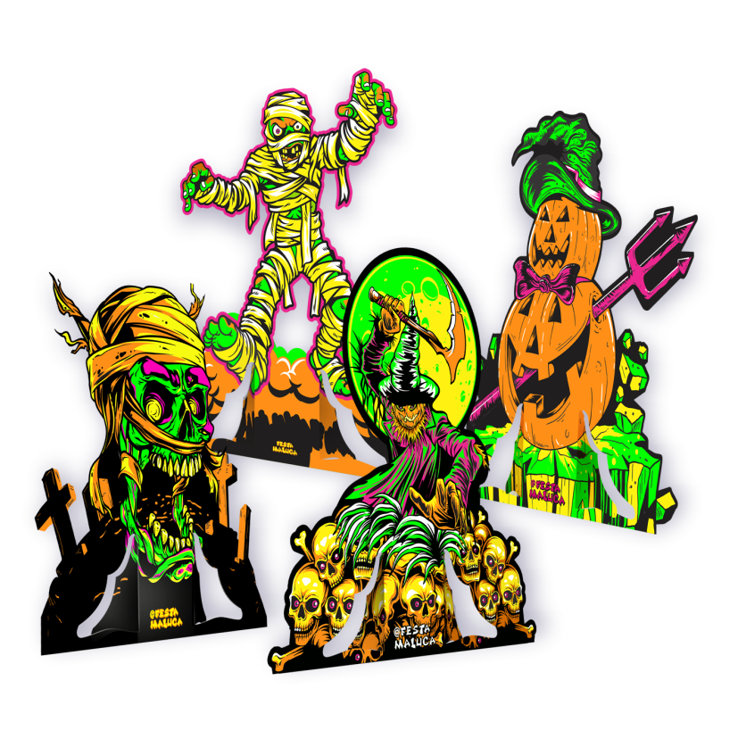 Peças decorativas fluorescentes para tornar qualquer ambiente mais imersivo no clima de Halloween.