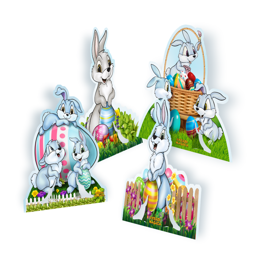 Decoração de mesa com tema pascal, ideal para incrementar ambientes festivos.