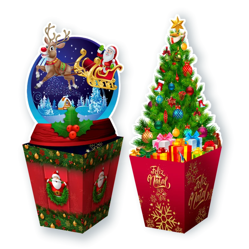 Dois enfeites natalinos para mesa, trazendo charme e sofisticação para a decoração.