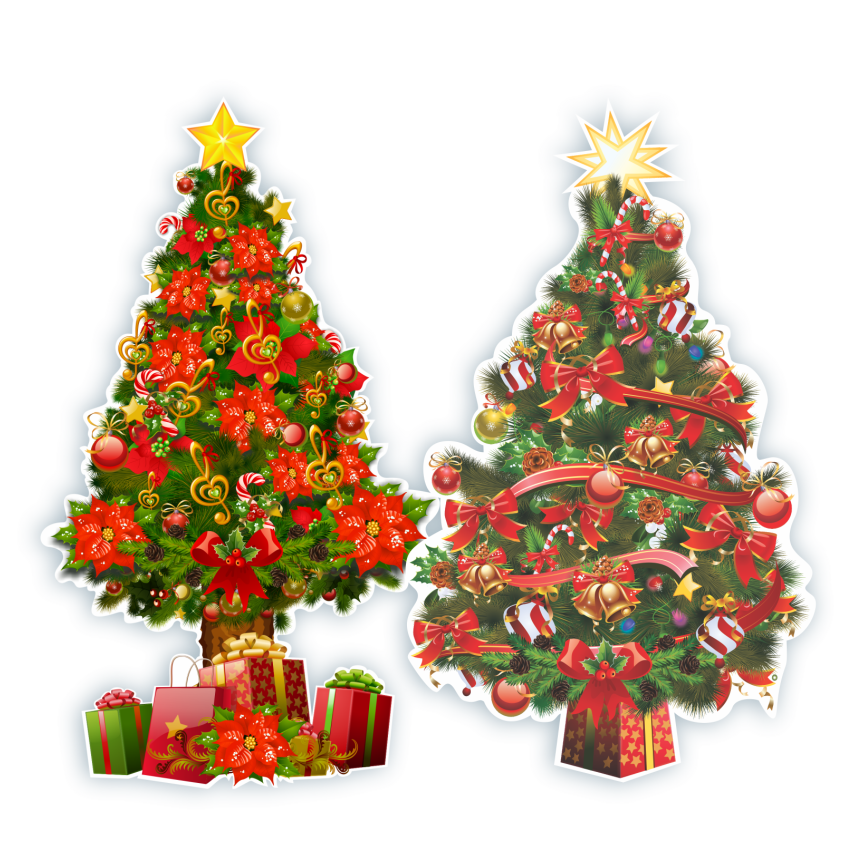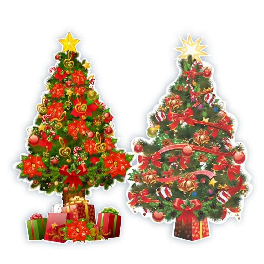 Conjunto com duas árvores de Natal maiores, ideais para decorações festivas mais elaboradas.