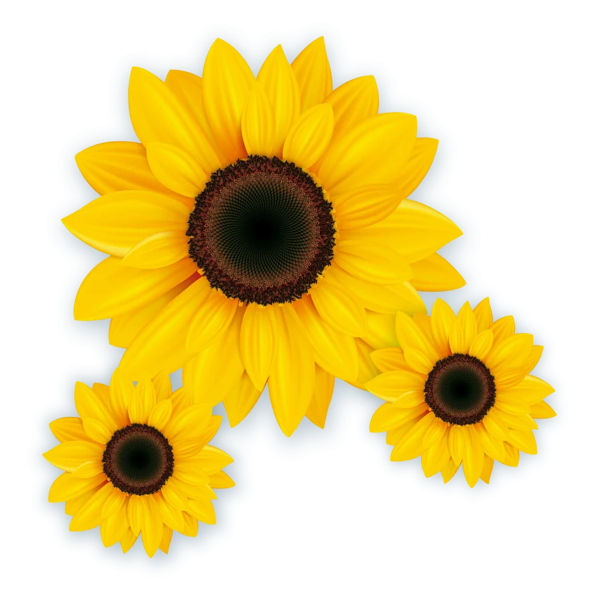 Medidas: girassol grande de 50cm x 50cm e dois pequenos de 23cm x 23cm.