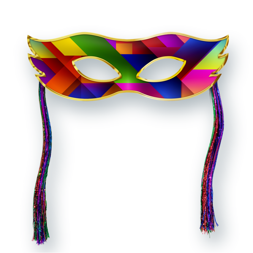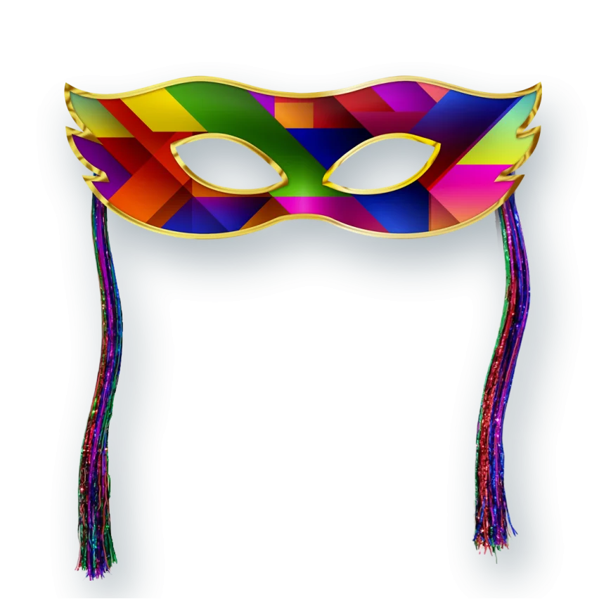 Máscara vibrante com fitas coloridas, perfeita para destacar qualquer look de carnaval.