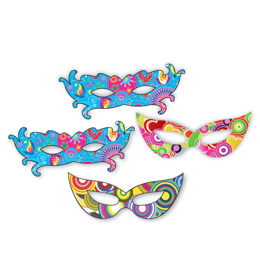 Kit com quatro máscaras pequenas, perfeitas para compor fantasias ou utilizar na decoração.