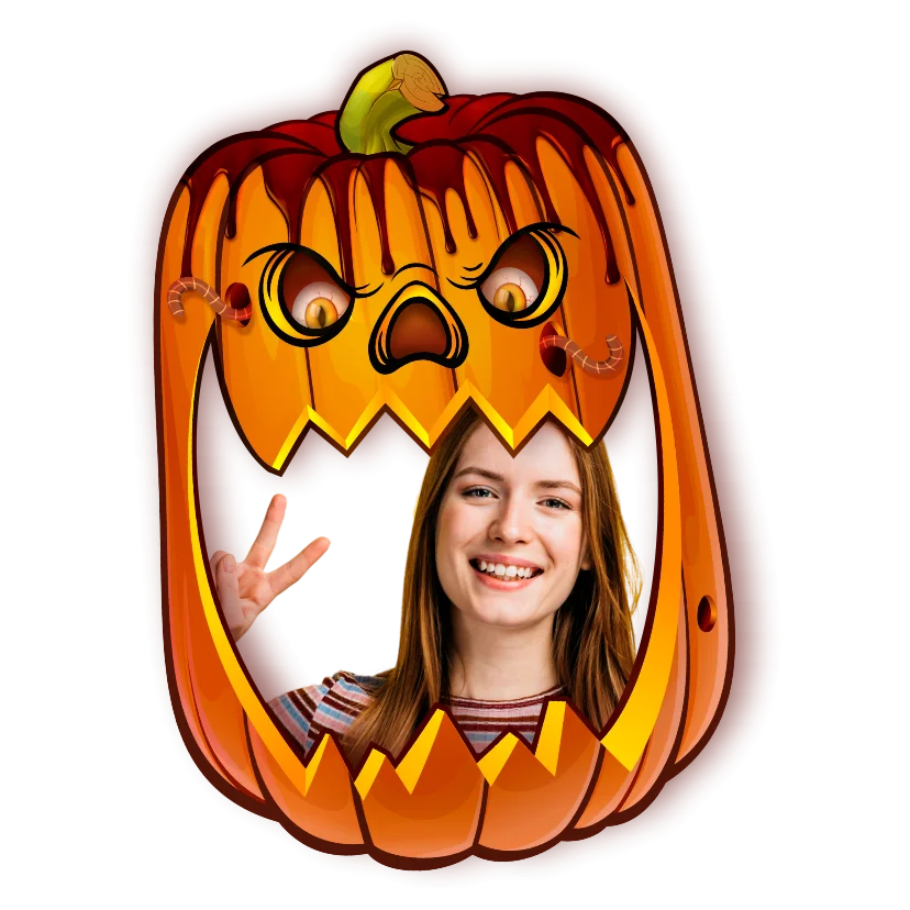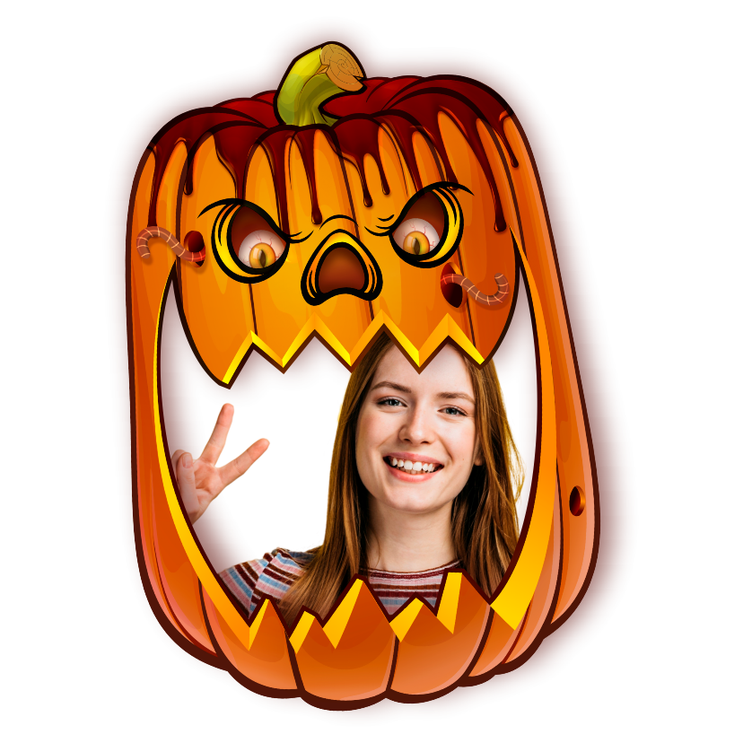 Painel decorativo em formato de abóbora, ideal para tirar fotos e criar registros divertidos em festas de Halloween.