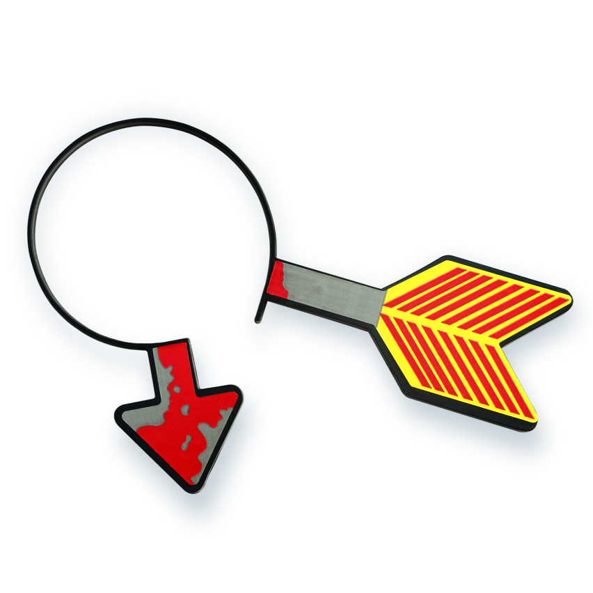 Tiara temática com flecha atravessada, ideal para complementar fantasias e caracterizações de Halloween. (L)19cm x (A)14cm