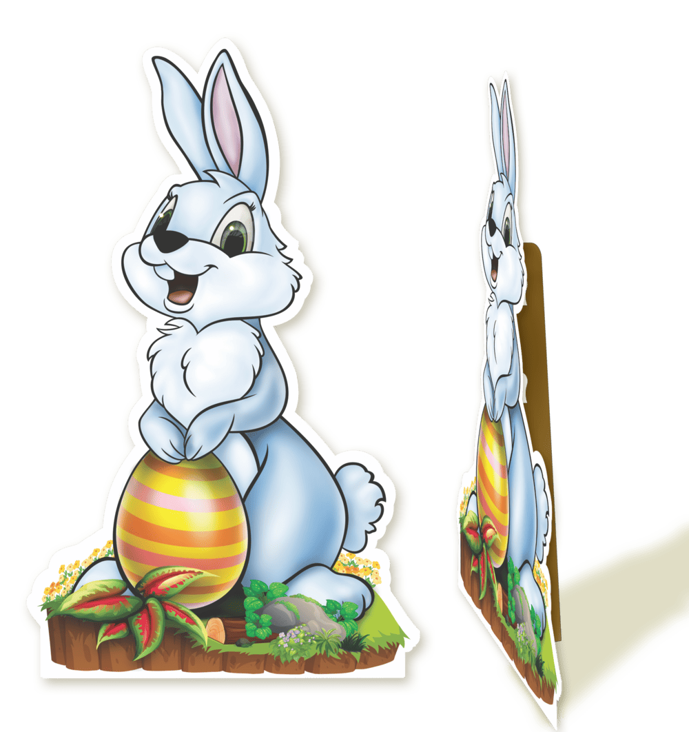 Totem decorativo de coelha para ambientes festivos.